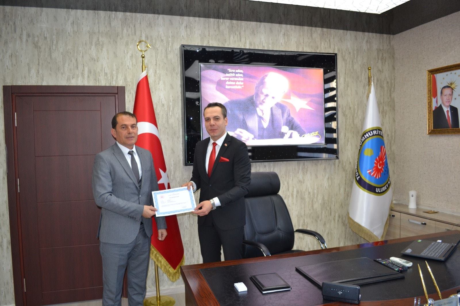 lçemiz Kaymakamı Sayın Onur ÖZAYDIN, Eğitim-Öğretim Yarıyıl sezonunda başarılı ve özverili Çalışmalarından dolayı okul idarecileri ve öğretmenlere başarı belgelerini takdim etti.